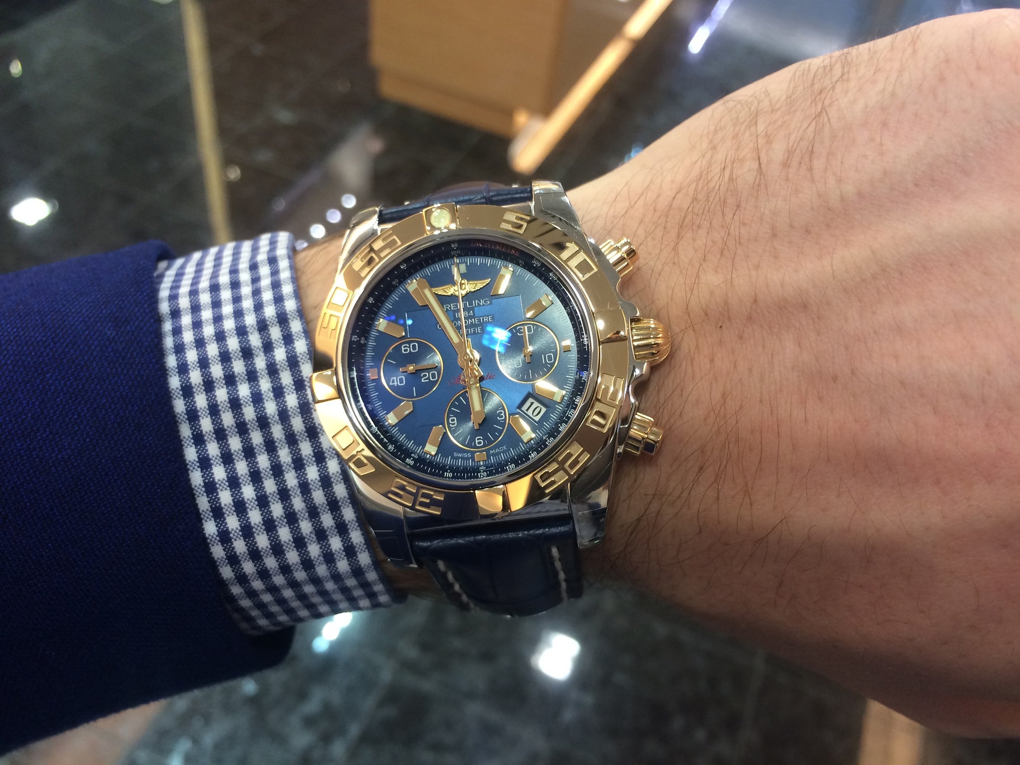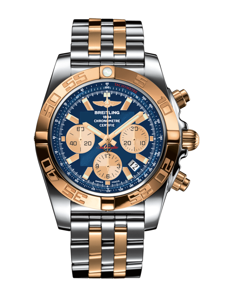 The leading model among the Breitling collections, the Chronomat 44 reflects a universe dedicated to performance, sporting feats and surpassing personal limits. The sturdy case housing Manufacture Breitling Caliber 01 boasts water resistance to a depth of 500 m (1,650 ft) – a feat worthy of a diver’s watch. This chronograph with its powerful and unique style is an authentic instrument for aviators that comes in four versions (all-steel, steel with a bezel bearing four solid gold markers, steel with gold bezel or all-gold) with a broad selection of dials and straps/bracelets. The chronograph for all pilots.