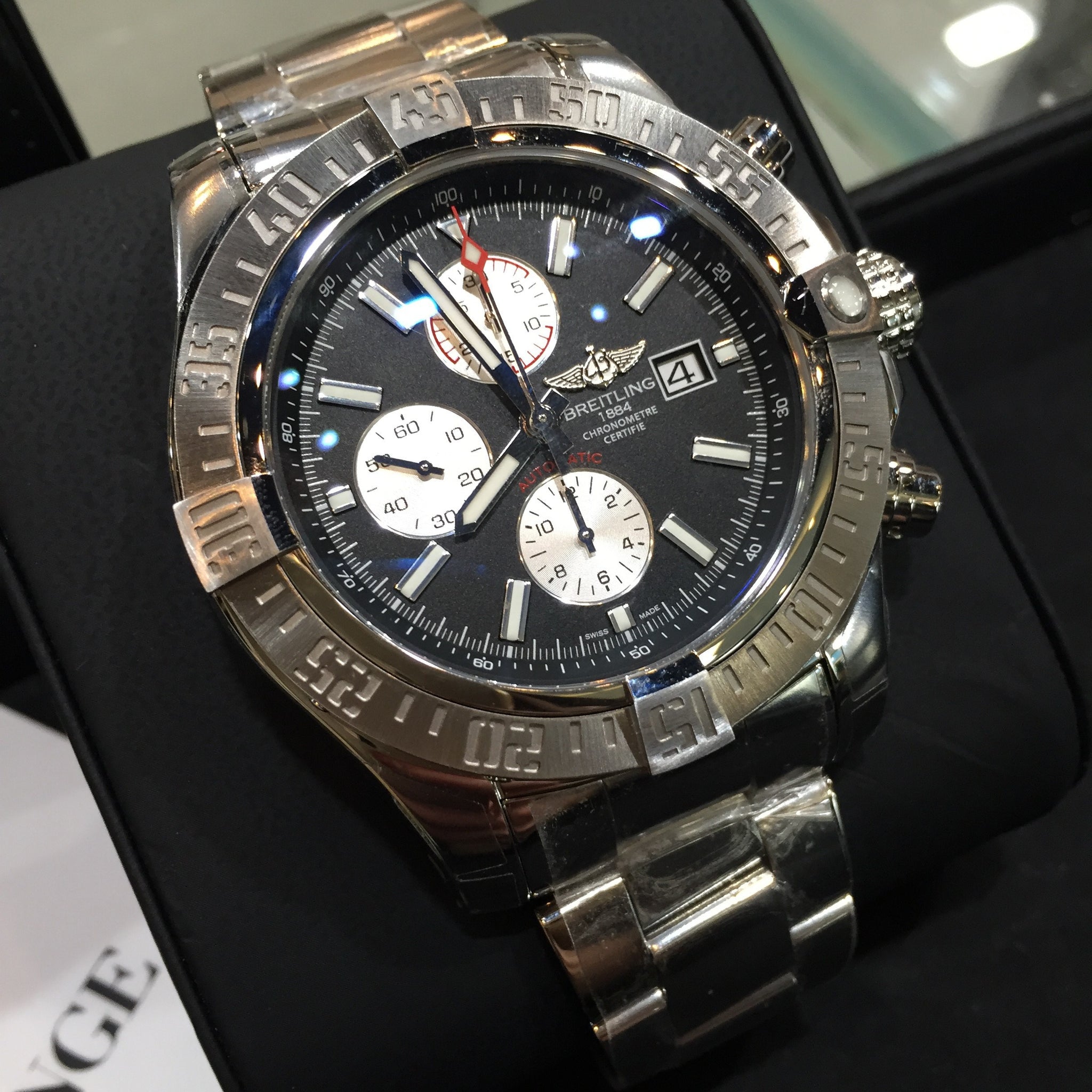 The ideal companion for any challenge, the Super Avenger II chronograph combines an impressive 48 mm diameter with a powerful and highly professional aesthetic. Its steel case, water-resistant to 300 m (1,000 ft), is geared up for the most extreme missions thanks to its rugged construction, screwed-in pushpiece guards and solid screw-lock crown with non-slip grip. The self-winding chronograph caliber is chronometer-certified by the COSC.